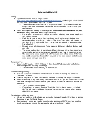 The attached document is a generic quick guide for setting up, using, and troubleshooting Opto-Isolated Digital I/O on Ensemble, Soloist, and A3200 drives.
